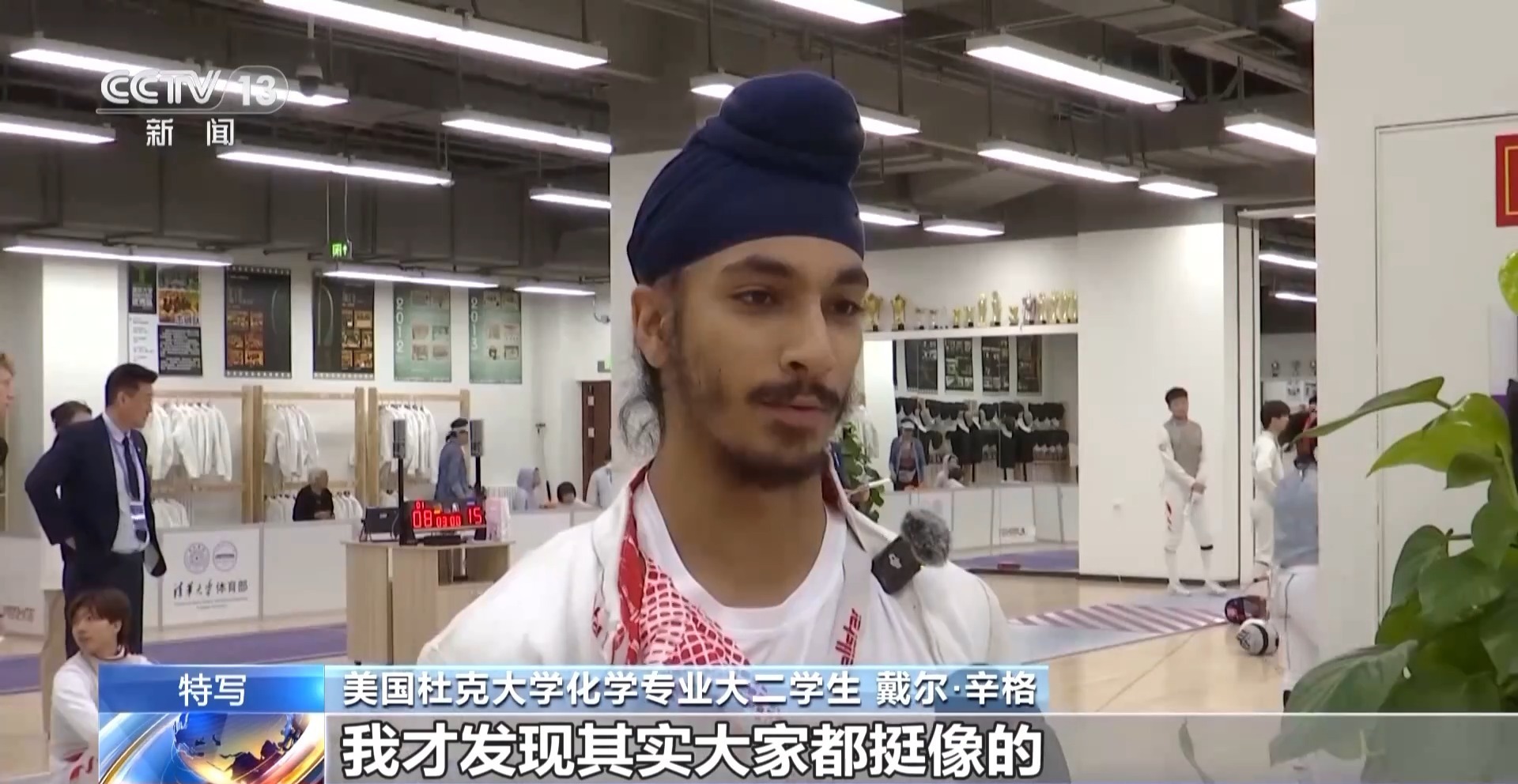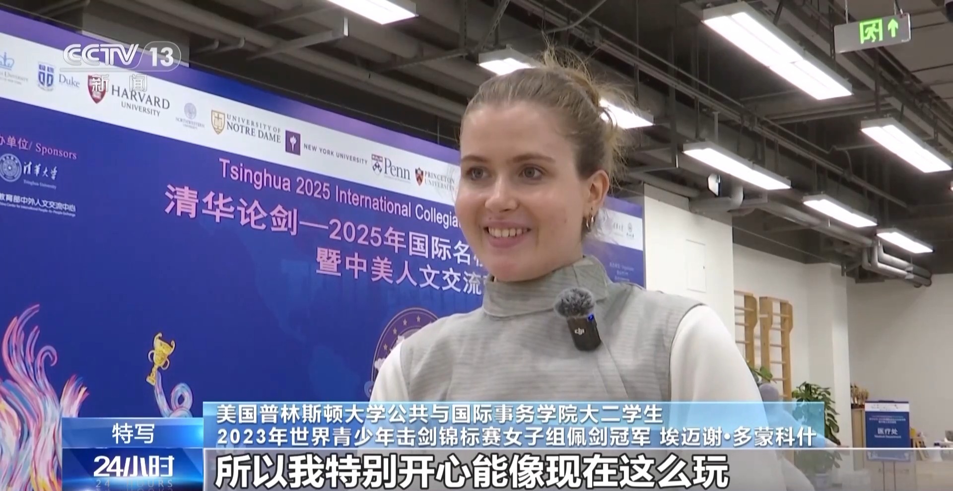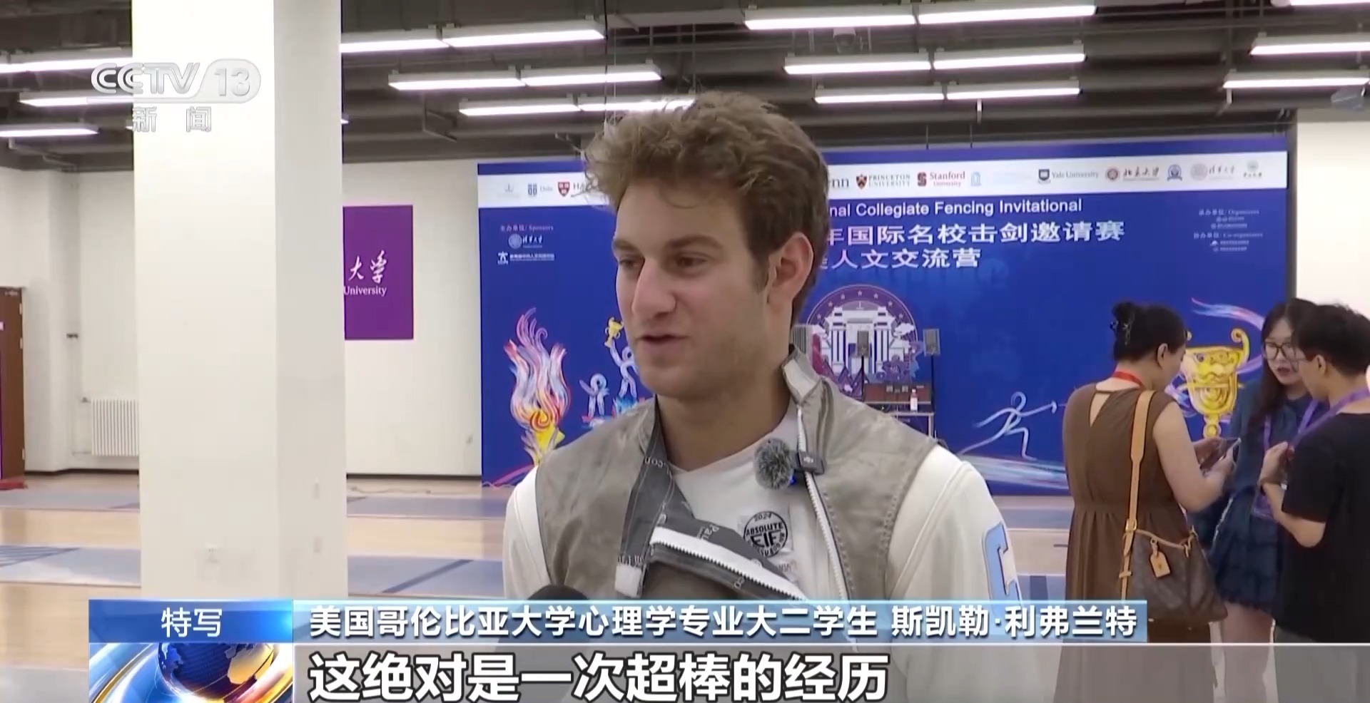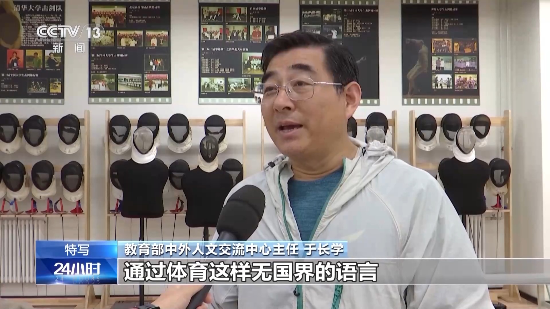 总台央视记者 周培培:在清华大学击剑馆,来自中美两国顶尖高校的大学生,正在以一把剑开启一场特别的对话。在我身后正在进行的是团体赛,由中国学生和美国学生混合编队,这样的融合组队方式,让中美青年有更多的机会交流,越走越近。