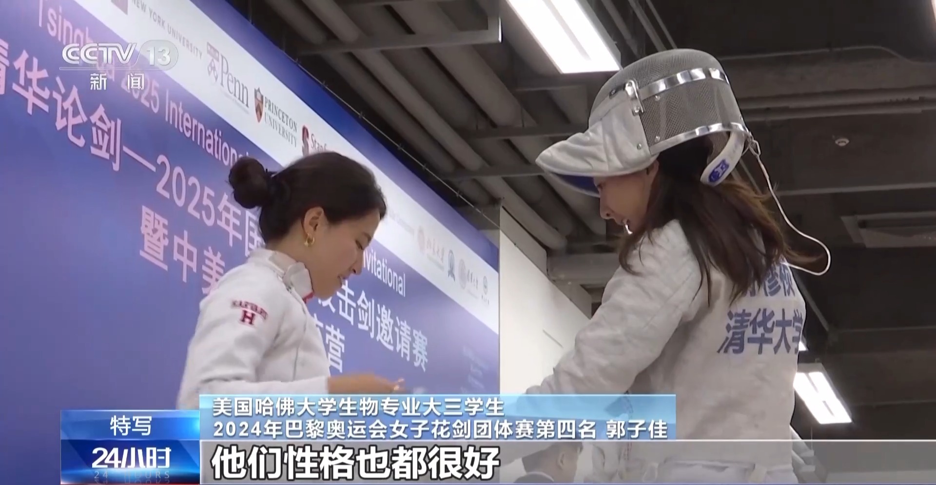 美国哈佛大学生物专业大三学生 2024年巴黎奥运会女子花剑团体赛第四名 郭子佳:我认识了很多清华的朋友,他们性格也都很好,就都能玩到一起。